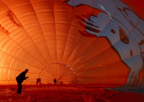 | 離陸地点で気球がみるみるうちに膨らむ様子は迫力満点 | |