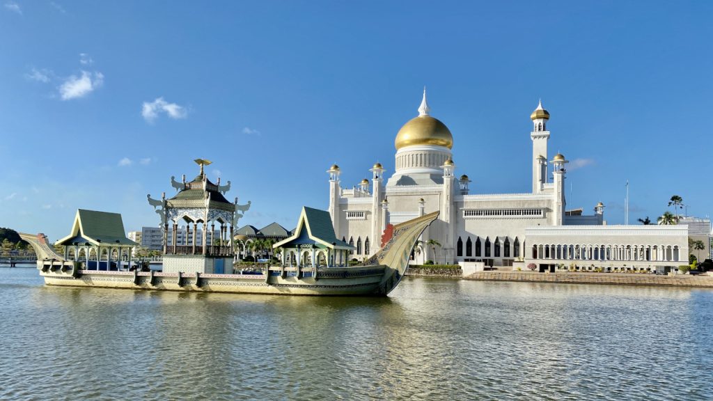 ブルネイは敬虔なイスラム教国であり、その文化と建築の美しさが大きな魅力です。首都の中心にある、ブルネイの象徴的なモスクはオマール・アリ・サイフディン・モスクです。水面に浮かぶように建つその姿は非常に美しく、特に幻想的なサンセットビューの写真撮影は必見です。