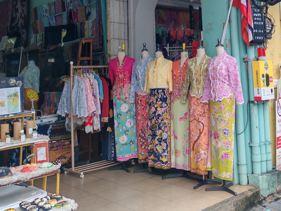 増:この洋服はタイ南部の民族衣装ババと呼ばれるもので、レンタルしているお店もあるので実際に着て街歩きするのもおすすめですよ。
