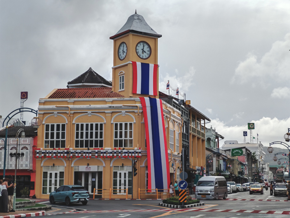 増:ここはプーケットタウンのシンボル的な時計台です。西洋建築と中国建築がミックスしたシノポルトギース様式の建物でシンガポールやマレーシアのペナンにある建物と同じ様式なんですよ。
