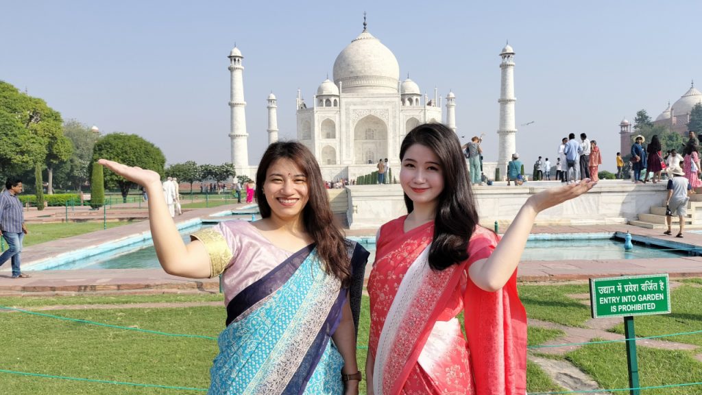 やっぱりタージ・マハルは一番のおすすめ!歴史的な建造物の前は、その壮大さとの対比で写真が映えますね。