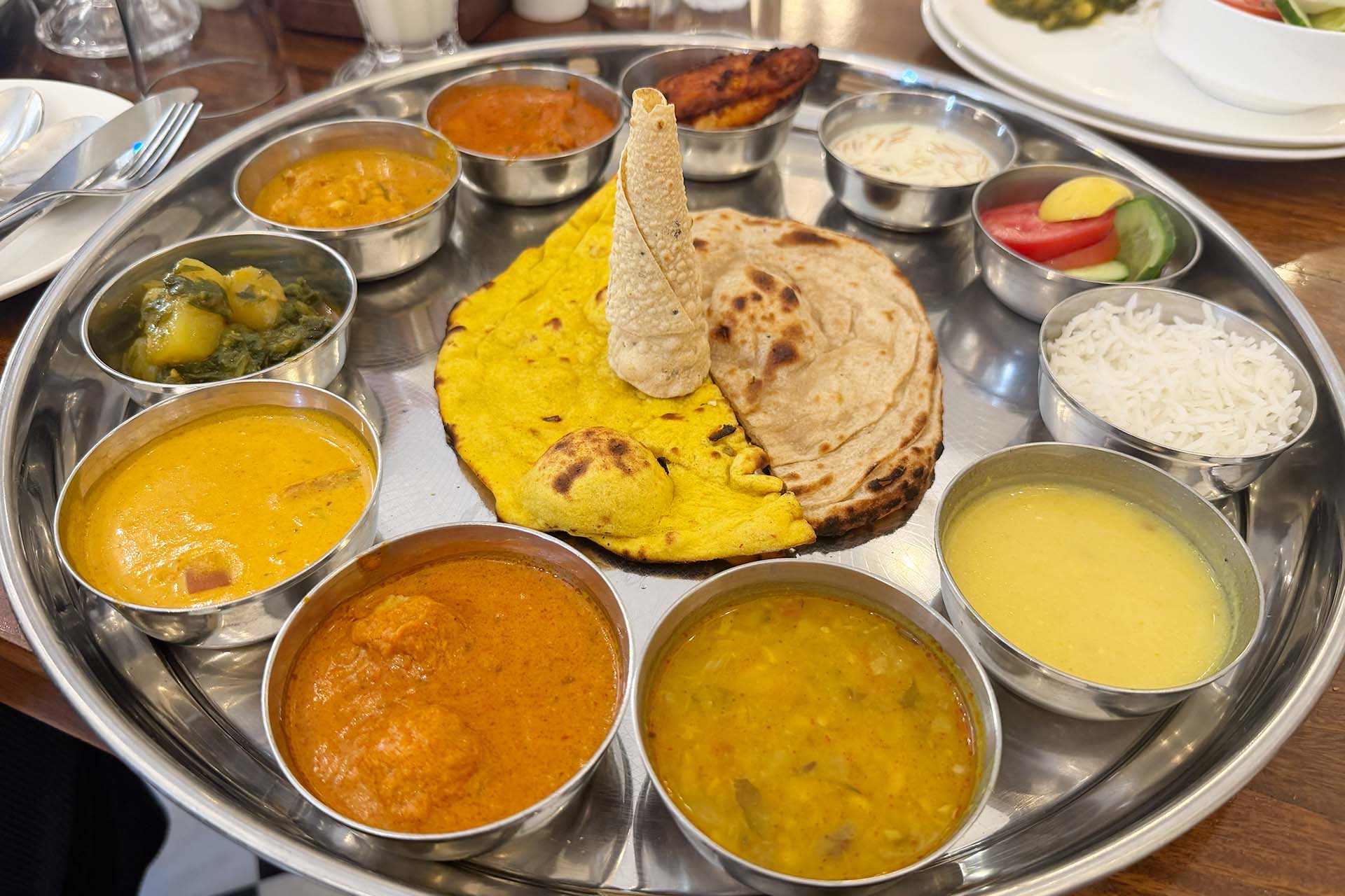 中でも見た目も美しい「ターリー」は、いくつかの料理が大皿にまとめられた「インドの定食」。