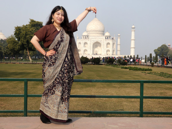 インドの民族衣装サリー(男性の方はクルタパジャマ)に着替え、タージマハルなどアグラ観光はいかがでしょうか?サリーは、インドの人々が普段の生活から、結婚式など特別なイベントの際に着用しています。特に女性に人気で、鮮やかな色のサリーが、歩くたびに揺れる姿は本当に魅力的です。色やデザインも豊富で、約30種類の中からお好きなサリーをお選び頂けます。