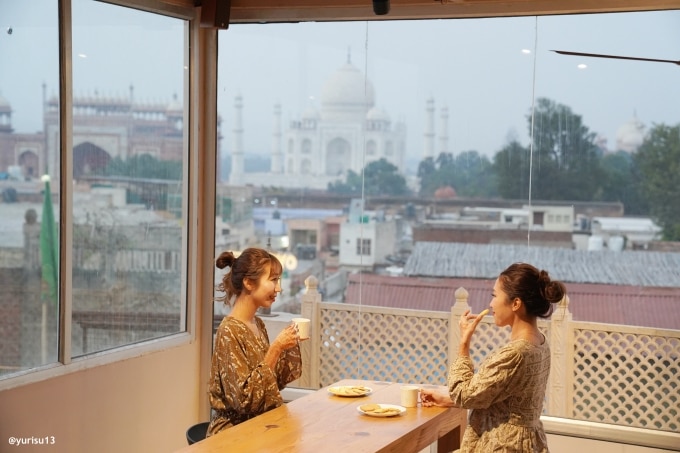 | 英語ドライバーとともに、タージマハル近くのホテルの屋上カフェへ移動 | |