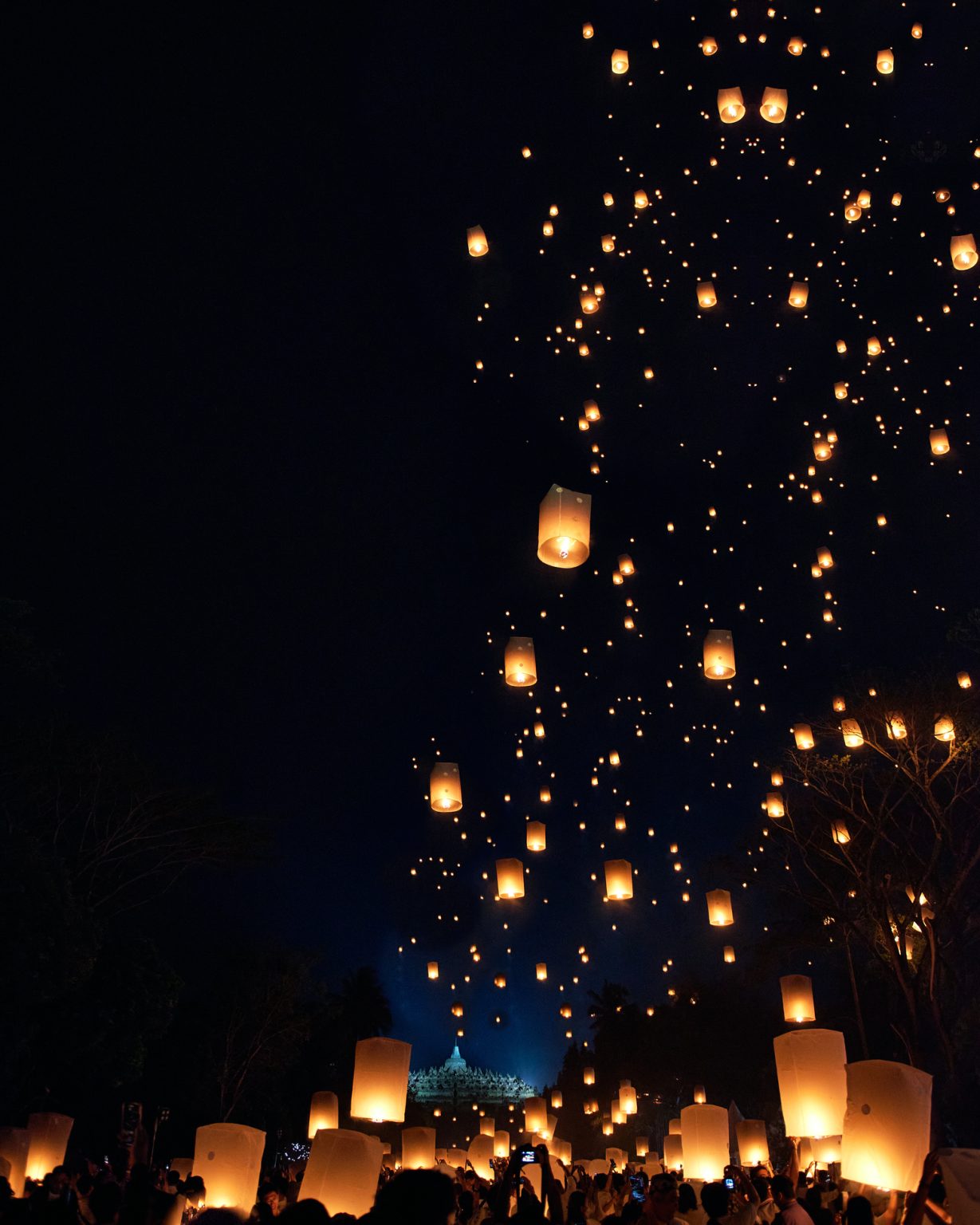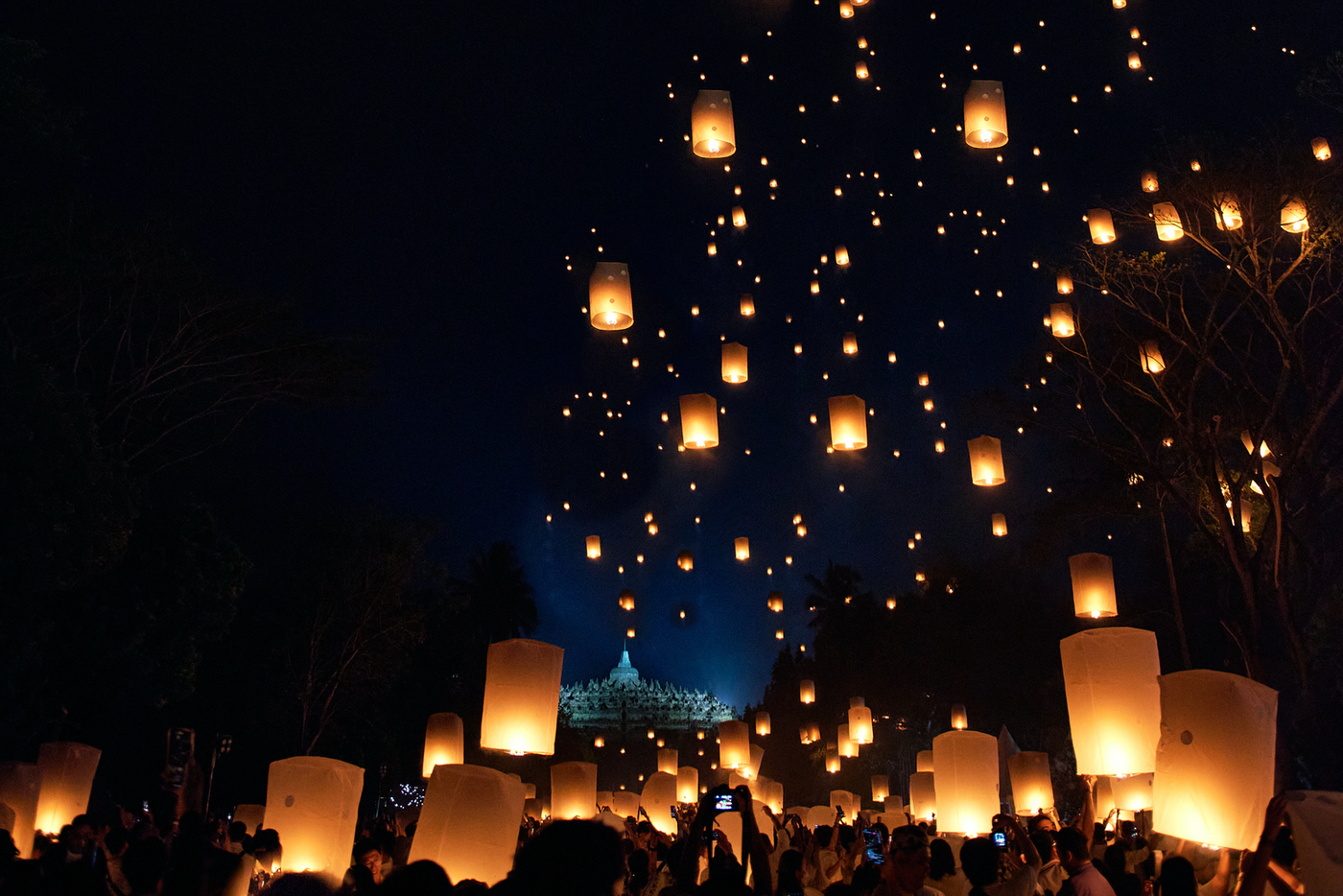 夜になると世界最大の仏教寺院ボロブドゥールは、ライトアップされ美しく幻想的に浮かび上がります。そしてワイサックのハイライトは、ランタンの打ち上げ。祈りを込めて夜空に無数のランタンを放ちます。