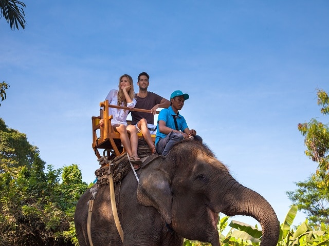スマトラ象の背中に乗って、バリ島の緑あふれる自然の中を散歩(約20分)した後に、ウブドの街歩きに出かけましょう。