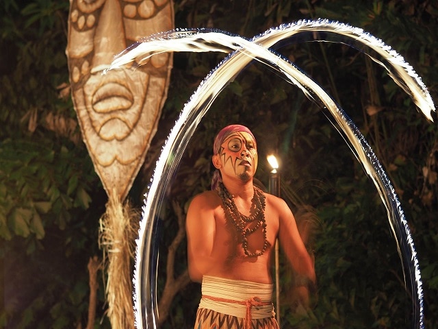 サファリジャーニーを体験した後は、ビュッフェディナーやファイヤーダンスショーで締め括ります!