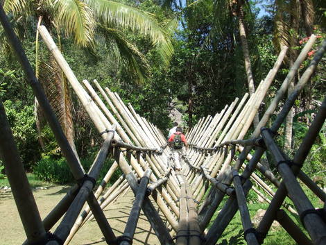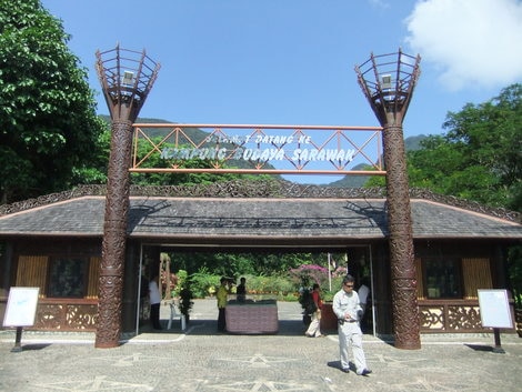 クチンより約35Kmのダマイ・ビーチの一画にある、サラワク・カルチュラル・ビレッジは、サラワクの代表的な7つの民族―イバン族、ビダユ族、プナン族、オラン・ウルー族、メラナウ族、マレー人、中華―の、それぞれの伝統的な住居を復元したテーマ・パークです。 各住居では民族衣装を纏った先住民族の人々が、伝統的な踊りや音楽で歓迎します。そこでは、昔ながらの自然の恵みの利用の仕方や、様々な伝統工芸、生活様式、儀式など、サラワクの民族の多様な文化や知恵を学び取る事が出来ます。さらには、吹き矢に挑戦したり、シンプルな弦楽器の「サペ」を弾いたり、地酒「トゥア」や様々な伝統菓子を試したりと、サラワクならではの体験が出来ます。 1日2回の民族舞踊のショーは、色彩豊かで、伝統的な各民族の踊りが堪能できます。