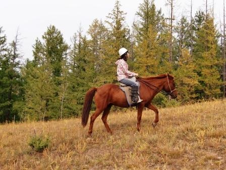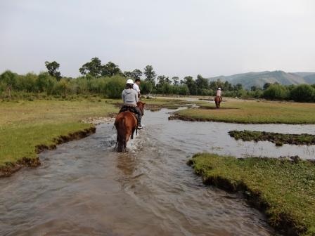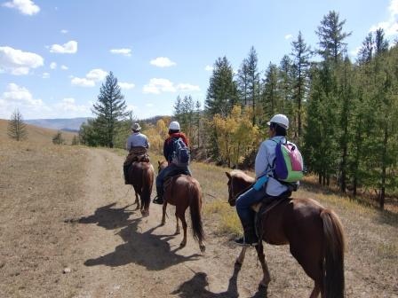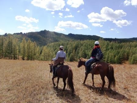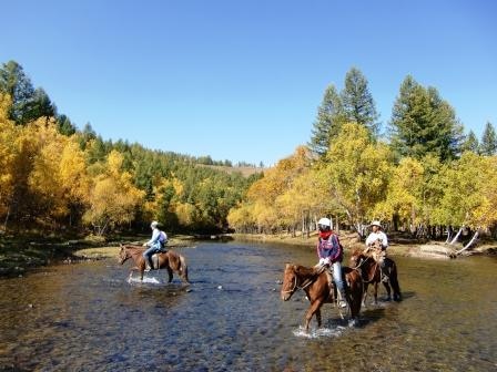 テレルジからさらに奥にいった場所で行う乗馬。川を渡り、平原を疾走し、そして山の頂上をめざす。テレルジと同様いろいろな景色を楽しみながらの乗馬をお楽しみください。ウランバートル支店おすすめのスポットです。