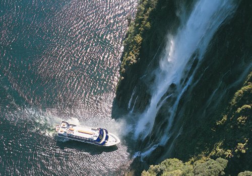ニュージーランド南島南西部にある、壮大なフィヨルド(氷河の浸食によって形成された、深く入り組んだ湾)のことです。氷河によって垂直に削り取られた高さ1,000メートル以上の断崖が海面からそそり立ち、圧倒的な迫力が見どころです。クルーズは観光の定番であり、最も人気のある方法で、フィヨルドの奥深くまで進み、滝の近くまで接近したり、野生動物を観察したりできます。