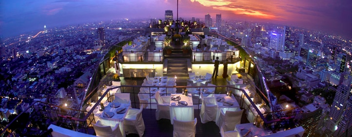 バンコクで屈指の高級ホテル、バンヤンツリー。その最上階61階の屋上にあるレストラン&バーが「バーティゴ」です。レストランから手すりを隔てた向こう側には、絶景が広がります。ディナーでは息を呑むような夜景をお楽しみください。