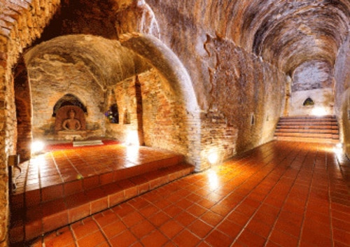 歴史ある寺院で、「ウモーン」(タイ語でトンネルの意味)の寺と呼ばれています。地下に広がるトンネルの中には仏像が安置され、静かな空気に包まれています。