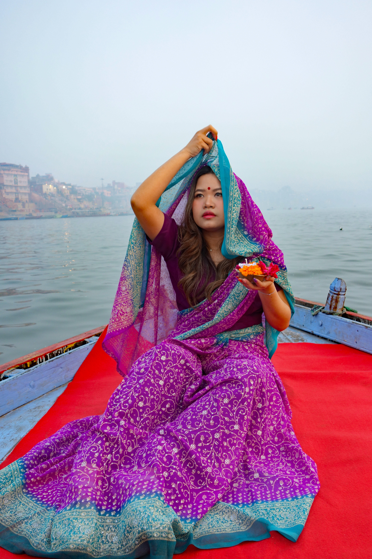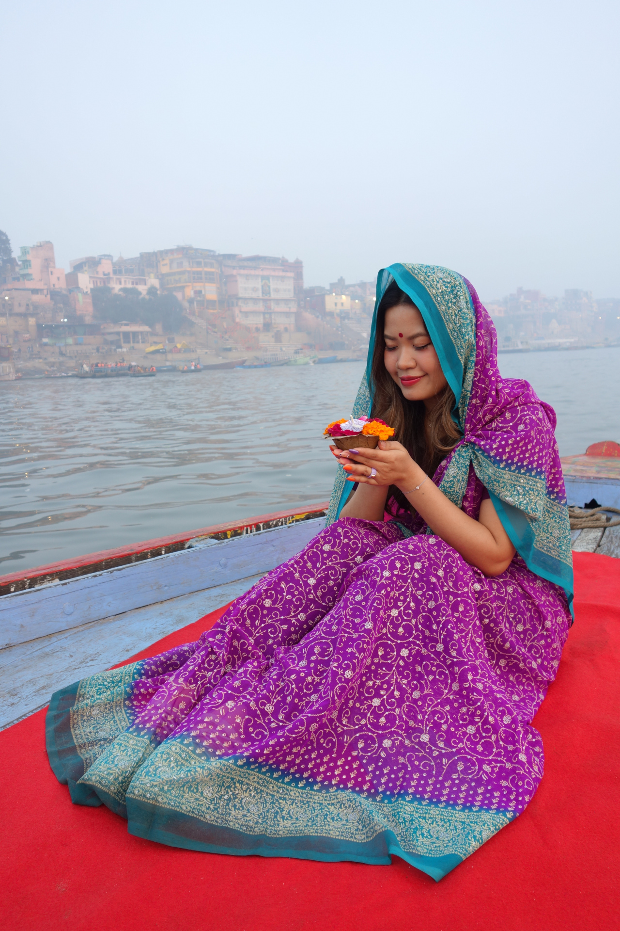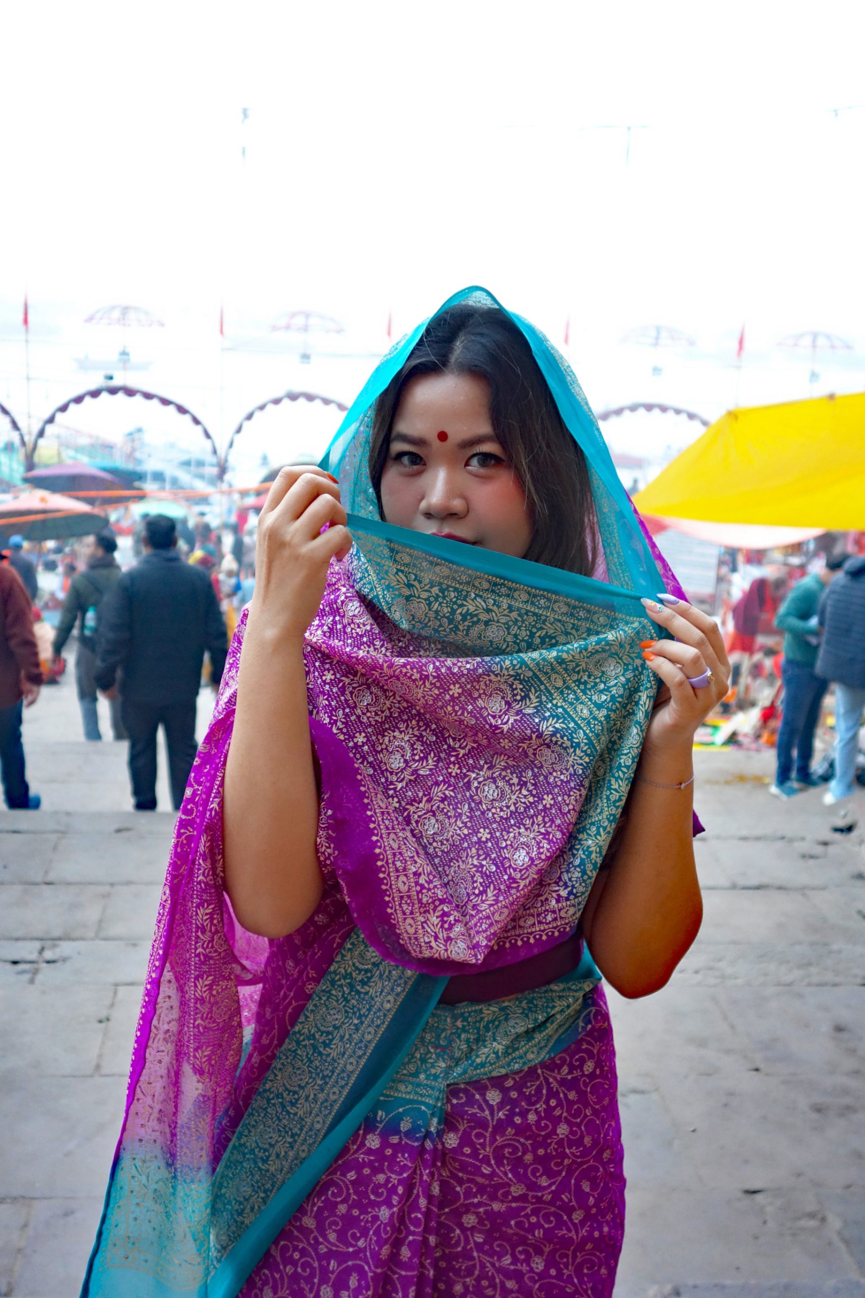 サリーをまとえばガンジス川やバラナシの雑多な街並みにも不思議と映え、ファンタジーの世界に迷い込んだ気分です。