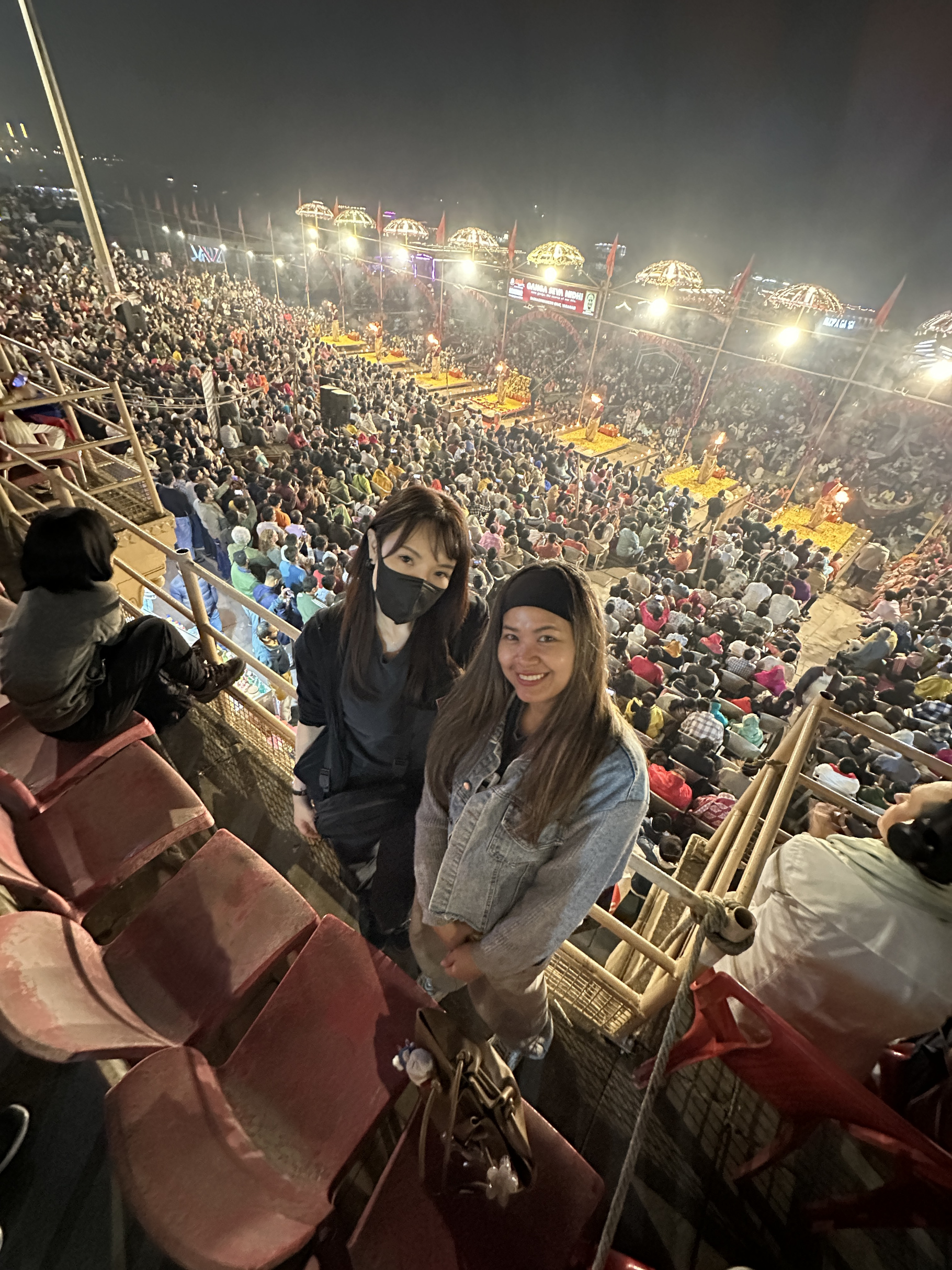 混雑を避けて、ゆったりと特等席から眺めるプージャは、幻想的な炎のダンスを堪能することができます。上から見渡す光と祈りの光景は、写真にも心にも残る特別な体験に。
