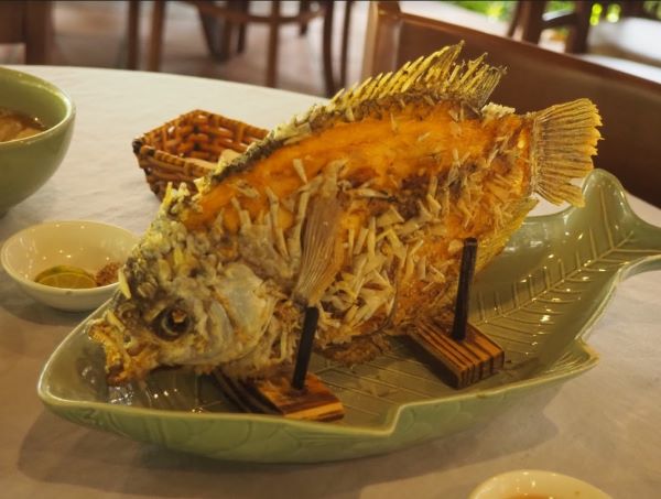 人気レストラン「メコンレスト」にて、名物「エレファントフィッシュ」など南部料理を堪能